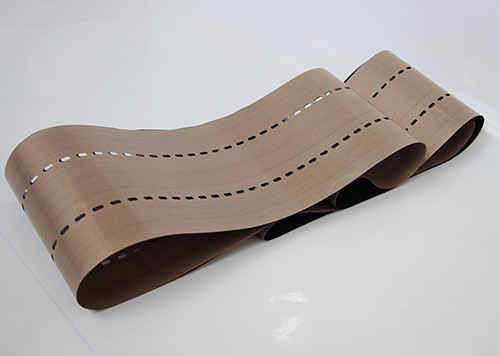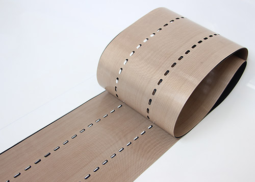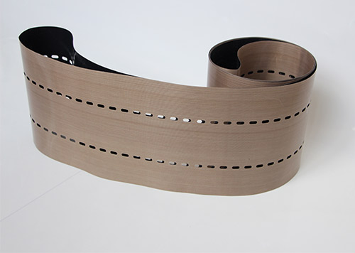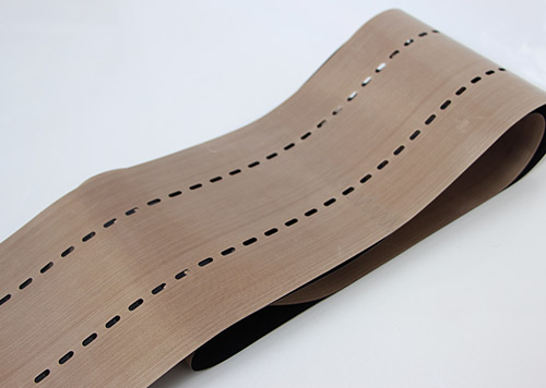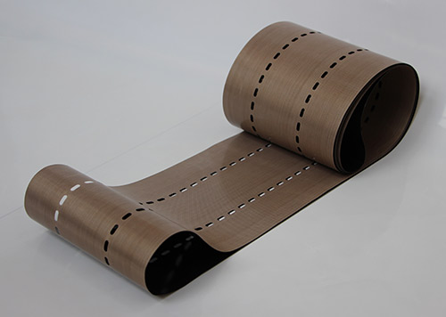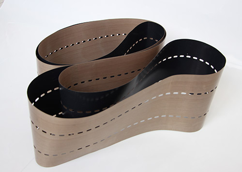 串焊機(jī)打孔特氟龍輸送帶采用高強(qiáng)度玻璃纖維紗或凱芙拉(芳綸)經(jīng)圓織設(shè)備編織筒狀織物,采用工藝技術(shù)涂覆特氟龍樹脂(PTFE)制成的。它克服以往輸送帶接口連接處易斷裂的現(xiàn)象。連接處周長(zhǎng)不等而造成走行穩(wěn)定性差、跑偏現(xiàn)象。無縫皮帶運(yùn)轉(zhuǎn)壽命比任何接法的特氟龍輸送帶壽命都要長(zhǎng)3倍以上。