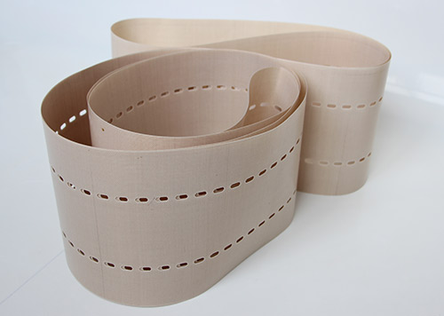 串焊機(jī)打孔特氟龍輸送帶采用高強(qiáng)度玻璃纖維紗或凱芙拉(芳綸)經(jīng)圓織設(shè)備編織筒狀織物,采用工藝技術(shù)涂覆特氟龍樹(shù)脂(PTFE)制成的。它克服以往輸送帶接口連接處易斷裂的現(xiàn)象。連接處周長(zhǎng)不等而造成走行穩(wěn)定性差、跑偏現(xiàn)象。無(wú)縫皮帶運(yùn)轉(zhuǎn)壽命比任何接法的特氟龍輸送帶壽命都要長(zhǎng)3倍以上。
