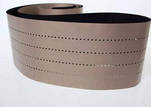 串焊機(jī)打孔特氟龍輸送帶采用高強(qiáng)度玻璃纖維紗或凱芙拉(芳綸)經(jīng)圓織設(shè)備編織筒狀織物,采用工藝技術(shù)涂覆特氟龍樹脂(PTFE)制成的。它克服以往輸送帶接口連接處易斷裂的現(xiàn)象。連接處周長不等而造成走行穩(wěn)定性差、跑偏現(xiàn)象。無縫皮帶運(yùn)轉(zhuǎn)壽命比任何接法的特氟龍輸送帶壽命都要長3倍以上。