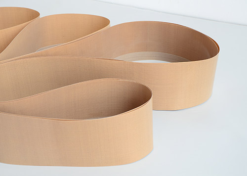 無縫帶又稱無接縫粘合機(jī)帶,英文名稱seamless fusing machine belt,采用高強(qiáng)度玻璃纖維紗及凱芙拉(芳綸)經(jīng)園織設(shè)備編織筒狀織物,采用工藝技術(shù)涂覆特氟龍樹脂(PTFE)制成的。特點(diǎn)